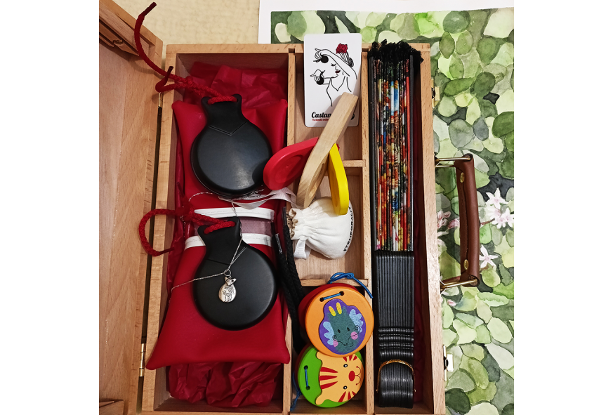 Escríbenos a info@castanuelas.com y "co creamos" tus ideas "de la peina al tacón". "Vaya presentación más apañá, cada detalle en su compartimento, y firme, en madera, pa la seguridad del contenido, el viaje es muy largo. Todo suma"