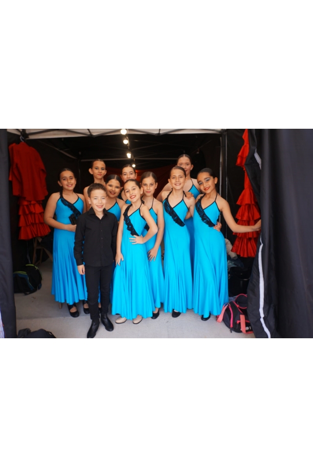 Prenda técnica profesional confeccionada para el ensayo y el baile de los Palos del Flamenco. Realizado en Lycra de alta calidad. El volante que contornea al pecho, le da movimiento. Vestido de tirantas disponibe en distintos colores y tallas. Combinable con todos los modelos de castañuelas.
