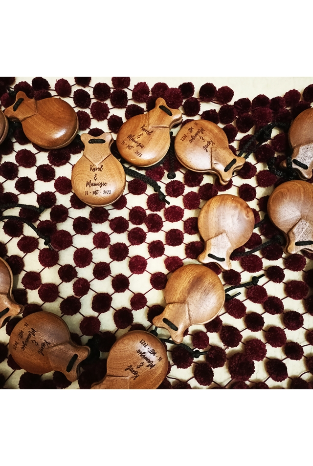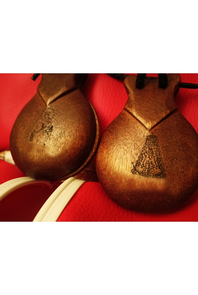 Castagnettes de flamenco conçues pour l'apprentissage. Esthétique différente. Percussion efficace pour l'oreille du musicien, l'aidant à coordiner son jeu avec le rythme de la musique. Prix exceptionnel. Quand vous serez devenu professionnel, vous en rejouerez pour vous souvenir de vos débuts.